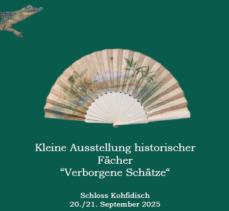 Zum zweiten Mal bei „Kramuri“ auf Schloss Kohfidisch, 20./21. September 2025: Zum diesjährigen Thema „Verborgene Schätze“ zeige ich historische Fächer aus meiner Sammlung. Gleichzeitig gibt es auch moderne Fächer und alte Fächer zu kaufen.